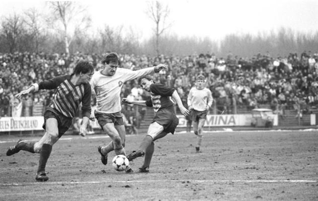 Pendant ce temps à l’Ouest, la RFA s’impose comme une grande nation du football grâce aux victoires de son équipe nationale (finaliste des Coupes du Monde 1982 et 1986, vainqueur de l’Euro 1980). Bien que le grand club de Berlin-Ouest, le Hertha, ne s’impose pas sur la scène européenne, d’autres clubs allemands remporteront plusieurs succès durant les années 1980 (Coupe d’Europe des clubs champions 1983 pour Hambourg, Coupe UEFA 1980 pour Francfort et celle de 1988 pour Leverkusen). À l’Est en revanche, le BFC Dynamo ne dépassera jamais les quarts de finale d’une compétition européenne. Seuls le Lokomotive Leipzig et le FC Carl Zeiss Iéna seront finalistes des éditions de 1981 et de 1987 de la Coupe UEFA. Quant à l’équipe nationale, elle n’arrivera jamais à se qualifier pour une phase finale de Coupe du Monde ou bien de Championnat d’Europe.