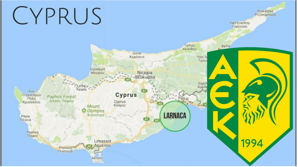 Le club de l’AEK est situé dans la ville de Larnaca, la 3e plus grande ville de Chypre. L’AEK Larnaca, fondé en 1994, est issue de la fusion de 2 clubs historiques : l’EPA Larnaca et Pezoporikos, vainqueurs par le passé de la Coupe et du Championnat national.