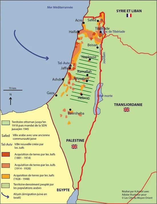 L’exode des Juifs en Palestine, entrepris au début du XXe siècle, s’accélère dans les années 1930 avec le développement du sionisme, mouvement qui vise à la création d’un Etat juif, et des persécutions subies par ce peuple en Europe et dans d’autres parties du monde.