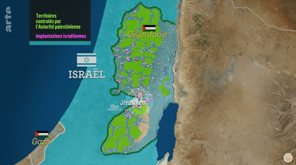 Pour approfondir + en détail le sujet, et éviter les raccourcis, je vous conseille l’excellent Dessous des Cartes d’Are pour contextualiser le conflit israélo-palestinien au sein de la situation géopolitique actuelle.