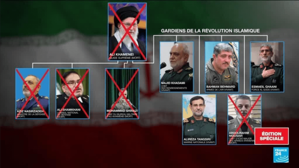 Dans le cas de l’Iran, le pays ne se trouve pas seulement confronté à une guerre classique puisque son régime politique a perdu ses principales figures politiques, militaires et religieuses.